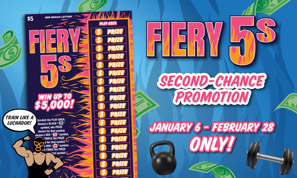 Enter eligible non-winning New Mexico Lottery Fiery 5s Scratchers for a chance to win $4,000, which may be used toward a home gym!